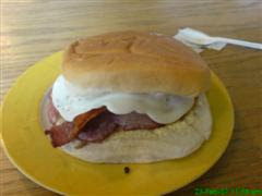 This breakfasty dish is a poached egg which has been plonked atop a slice of corned beef which in turn is atop a bit of toast.